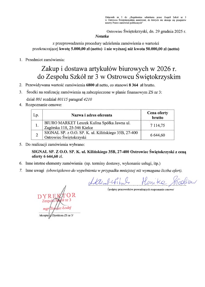 Wyniki zapytań dotyczących zakupów artykułów biurowych, środków czystości oraz świadczenia usług profilaktycznej opieki zdrowotnej.Ogłoszenia / By admin / 29 grudnia, 2025 29 grudnia, 2025