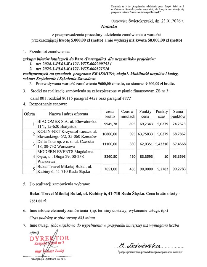 Wyniki przetargu na zakup biletów do Portugalii w ramach projektówOgłoszenia / By admin / 23 stycznia, 2026 23 stycznia, 2026