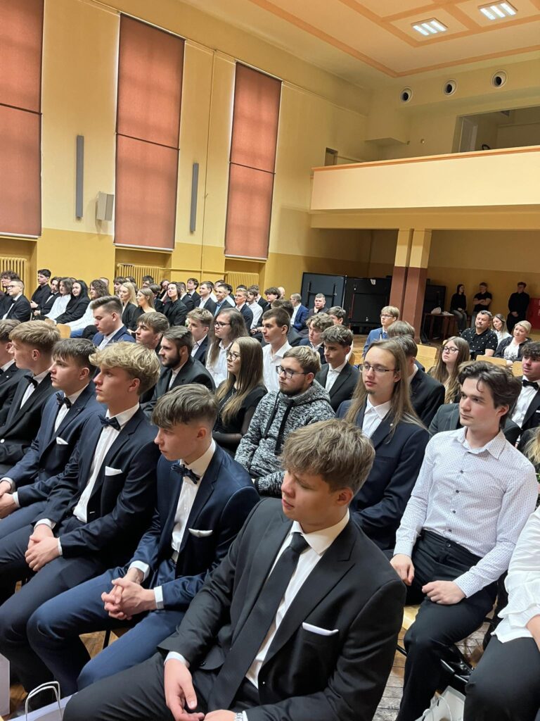 W trakcie spotkania wysłuchaliśmy wystąpienia dyrektora szkoły pana Tomasza Łodeja, który podsumował lata nauki maturzystów, dziękując im za wspólnie spędzony czas i życząc powodzenia na dalszej drodze. Następnie odbyło się uroczyste wręczenie nagród i wyróżnień przez dyrekcję oraz wychowawców – doceniono zarówno osiągnięcia naukowe, sportowe jak i zaangażowanie w życie szkoły.