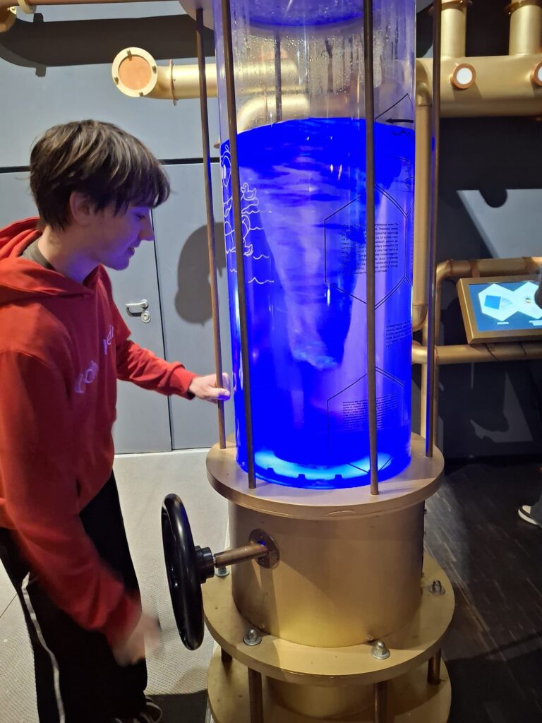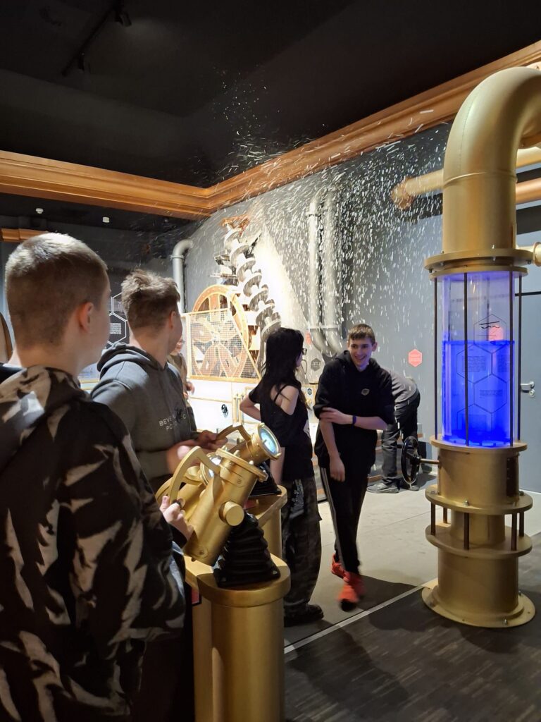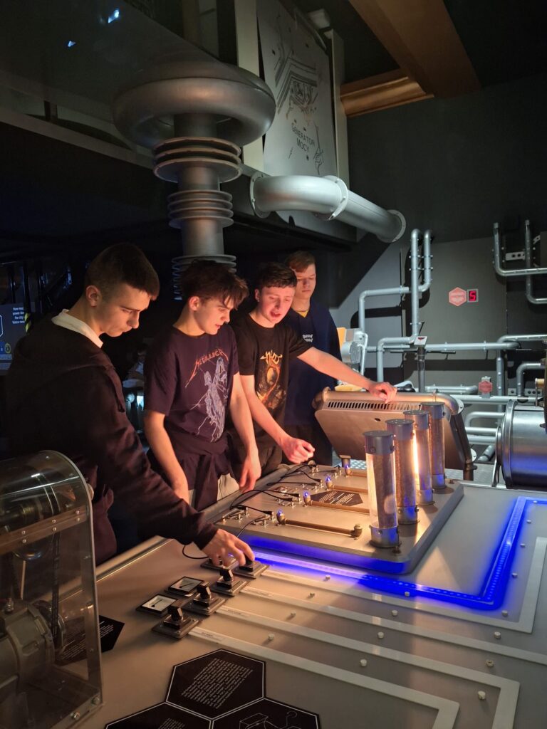 Kolejnym punktem wycieczki było Energetyczne Centrum Nauki. To nowoczesne miejsce edukacyjne, które pokazuje, czym jest energia i jakie znaczenie ma w naszym codziennym życiu. Uczniowie mogli samodzielnie wykonywać różne eksperymenty i korzystać z interaktywnych stanowisk.