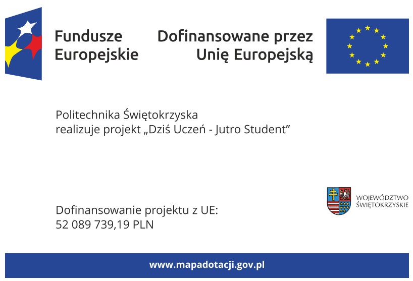 Projekt „Dziś uczeń- jutro student” realizowany jest przez Politechnikę Świętokrzyską, która będzie realizować poszczególne zadania w Partnerstwie z Uniwersytetem Jana Kochanowskiego i Starostwami powiatowymi województwa  świętokrzyskiego